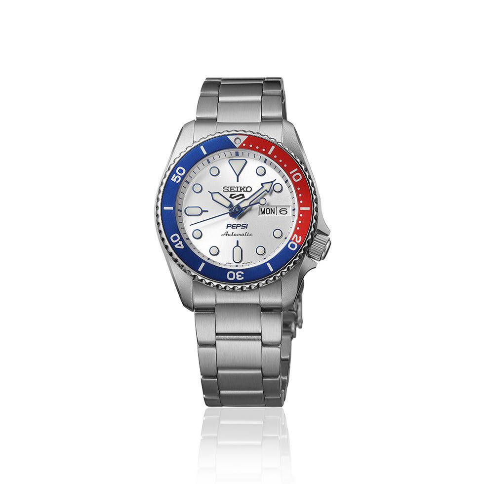 Lanzada en 1963, la línea Seiko 5 siempre ha representado una relojería fiable y accesible, con diseños deportivos y gran durabilidad. Esta colaboración con Pepsi —ya agotada— agrega una chispa de cultura pop a esa fórmula ganadora.