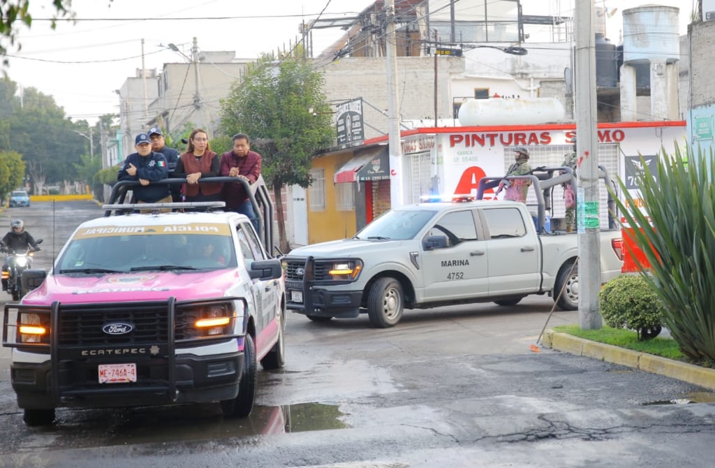 Posteriormente, Azucena Cisneros supervisó un patrullaje disuasivo como parte del Mando Unificado, por calles de Santa María Tulpetlac, con la intervención de Marina, Defensa, Guardia Nacional, policías estatal y municipal, en horarios de salida de cientos de vecinos para laborar o estudiar, con la intención de inhibir delitos como robo a transeúnte.
