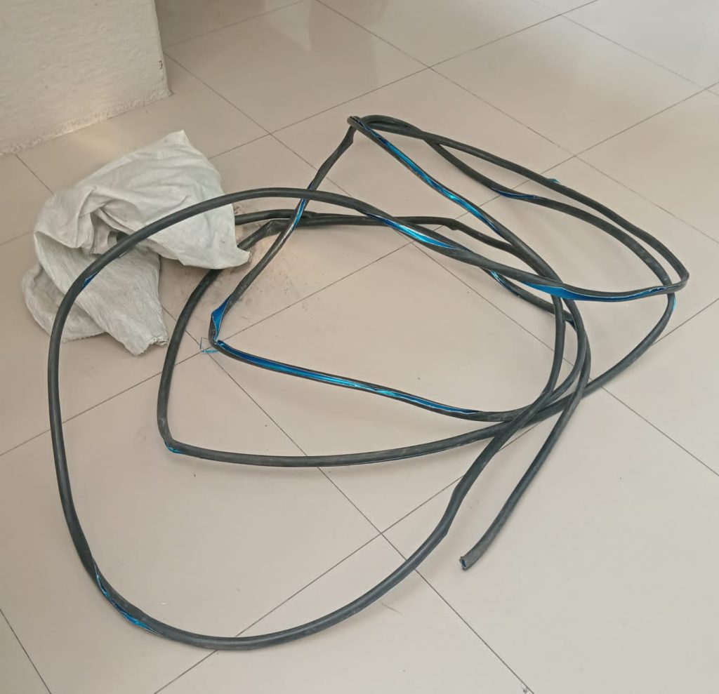 Además, se realizó el aseguramiento de dos puntas metálicas, una color gris y la otra rosa, con filo en uno de sus lados, así como un encendedor, unos 12 metros de recubierta plástica color negro con interior azul metálico y aproximadamente seis kilos de alambre, al parecer de cobre de un milímetro de grosor.