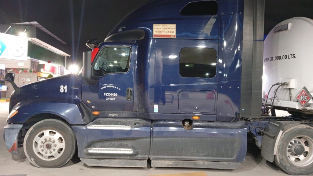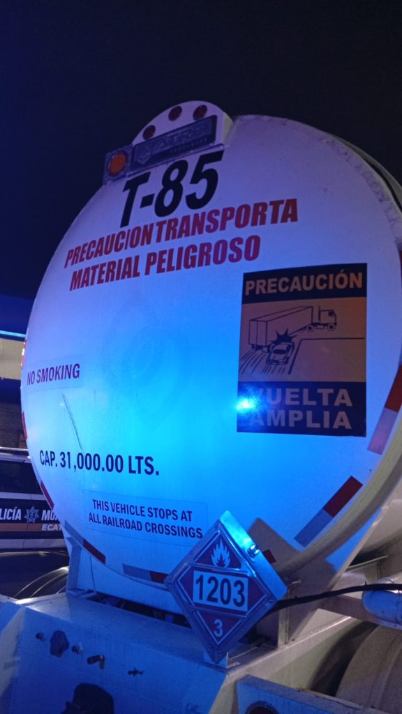 Los uniformados detectaron una pipa, con número T-85, con capacidad de 31 mil litros, que se encontraba dentro de la gasolinera G-500 y estaba preparada para descargar el combustible, pero no contaba con logotipos de ninguna empresa.