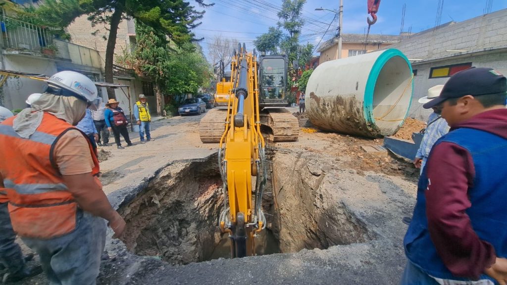 Gobierno de Ecatepec repara mega socavón y sustituye tubería de colector