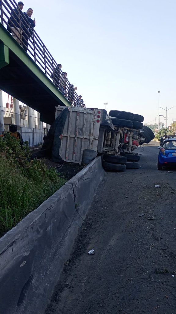 Fue a través de las cámaras del Centro de Mando que se detectó la volcadura de un tracto camión con caja de volteo y placas 661-DF-2, sobre su lado izquierdo, en la colonia Valle de Anáhuac, con dirección a la Ciudad de México, por lo que se realizó despliegue de cuerpos de emergencia.