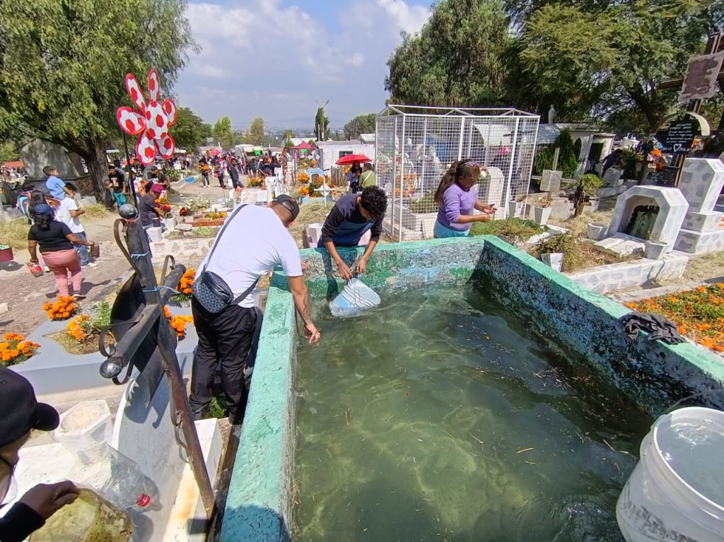Añadió que este día suministraron 24 pipas de agua tratada a los tres panteones municipales: Antiguo de San Cristóbal, San Efrén y San Isidro Atlautenco, y también fue recolectada la basura de los mismos, además de que policías municipales brindaron seguridad en las inmediaciones de los cementerios, con apoyo de elementos de Marina, Guardia Nacional y la policía estatal.