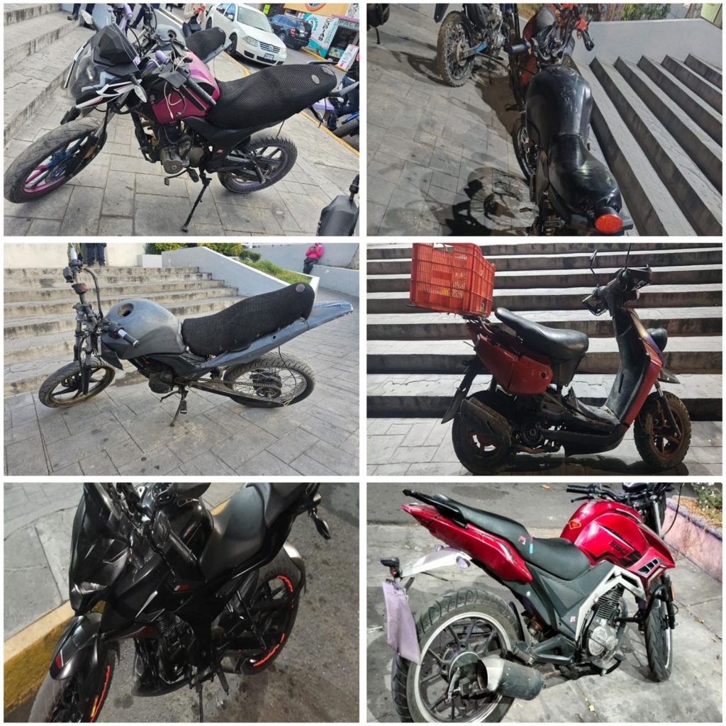 Ecatepec, Méx., a 15 de diciembre de 2025. Como resultado de patrullajes de proximidad social, la policía municipal recuperó seis motocicletas con reporte de robo en las colonias El Chamizal, Tablas del Pozo, Valle de Aragón y Rinconada de Aragón, y detuvo a cuatro sujetos en distintas intervenciones, quienes fueron presentados ante el Ministerio Público por su probable participación en el delito de encubrimiento por receptación.