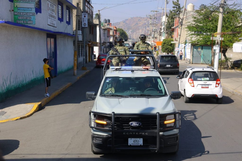 Ecatepec, Méx., a 25 de diciembre de 2025. El gobierno de Ecatepec mantiene un despliegue masivo de elementos de seguridad en las comunidades, con respaldo de fuerzas federales de Marina, Guardia Nacional y Sedena, para garantizar orden y paz a los habitantes durante el día de asueto, tras el festejo de las fiestas navideñas.