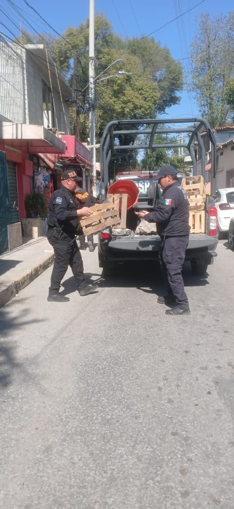 Los oficiales acudieron a las calles Carranza e Ignacio Allende para retirar obstáculos, como botes llenos de cemento, cajas de madera, llantas, sillas y tambos de señalamiento, principalmente, que obstaculizaban el libre estacionamiento.