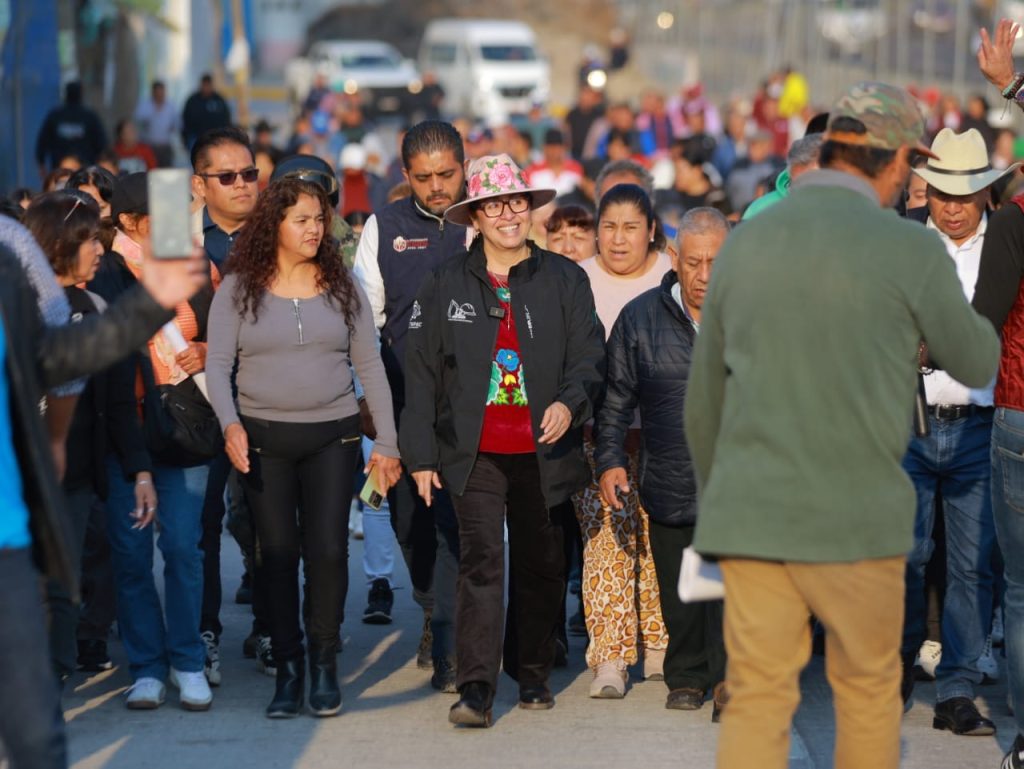 “No vamos a parar de pavimentarles”, afirmó la presidenta municipal de Ecatepec, quien junto con vecinos de esta región recorrió a pie el tramo rehabilitado de más de medio kilómetro y que forma parte del “Camino de los 9 Pueblos”, que corre paralelo a la autopista México-Pachuca, en dirección a la Ciudad de México, en la parte baja de la Sierra de Guadalupe.