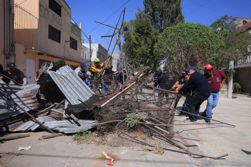 Ecatepec, Méx., a 25 de febrero de 2026. En respuesta a una demanda ciudadana que data de hace 10 años, el gobierno de Ecatepec aplicó el programa Rastrillo Social en el fraccionamiento Jardines de Santa Clara, donde retiró rejas y una jaula, esta última que servía como estacionamiento irregular y obstruía el libre tránsito de los vecinos.