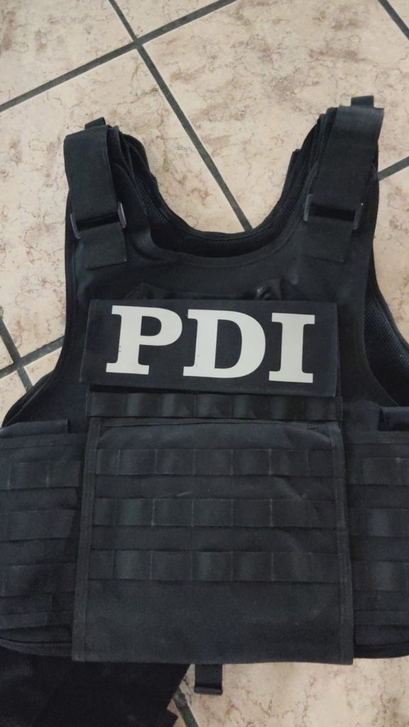 También portaban un arma tipo escuadra negra Glock 25 calibre .380 mm, con cargador y 13 cartuchos útiles; un arma tipo escuadra Glock 19x café; calibre 9 mm con cargador con 18 cartuchos útiles; dos chalecos tácticos con leyenda de la Fiscalía General de Justicia, un escudo y PDI, además de 12 teléfonos celulares y 46 mil pesos en efectivo.